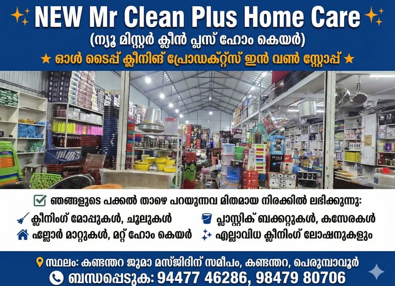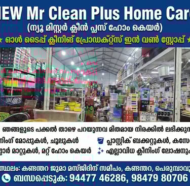 NEW MR CLEAN PLUS HOMECARE ALLAPRA P.O PERUMBAVOOR PIN:683556.CUSTOMER CARE:963311241(9.00 AM TO 6.00PM)